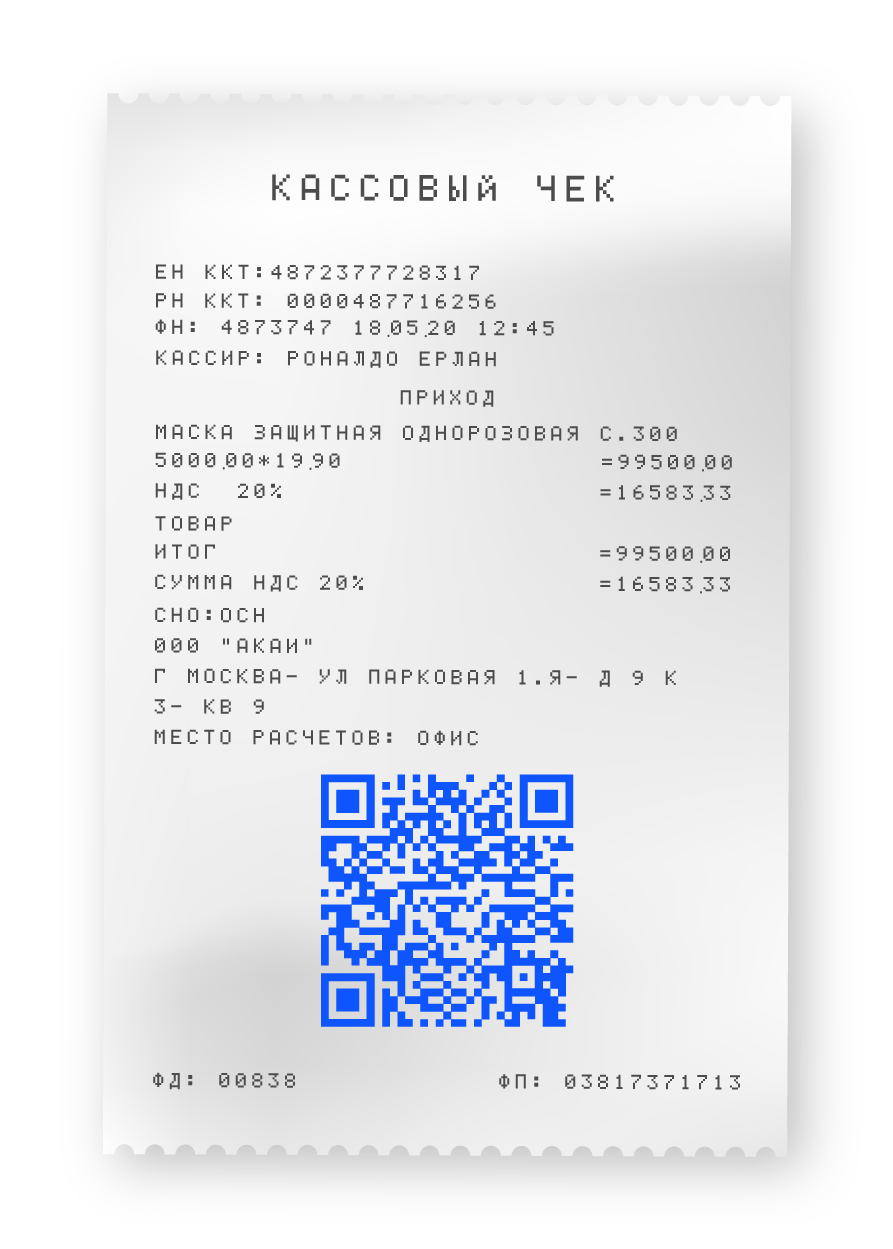 Действительность всех наших чеков вы можете проверить по QR-коду на сайте ФНС РФ.